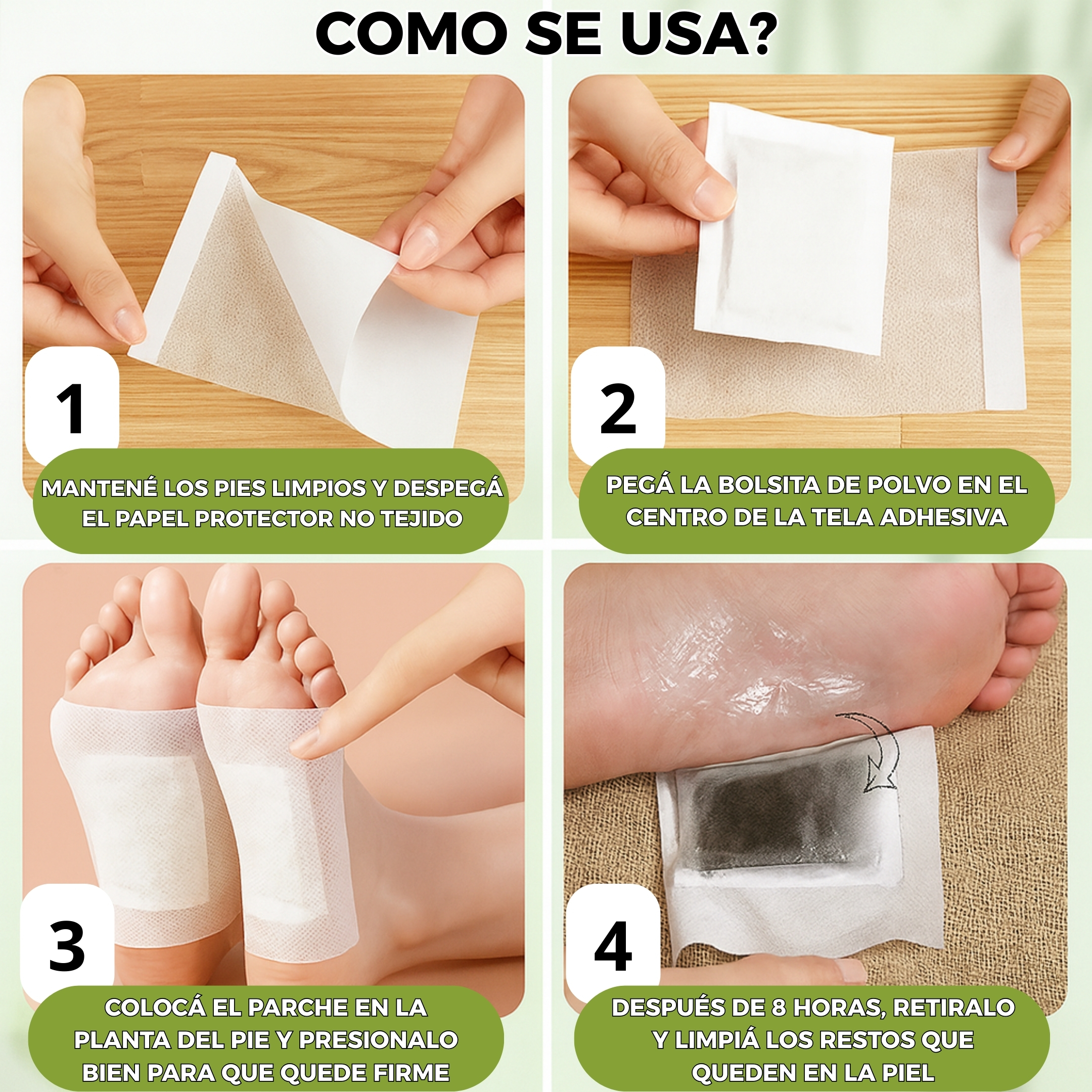 1️⃣ Colocá los parches en la planta de tus pies antes de dormir
